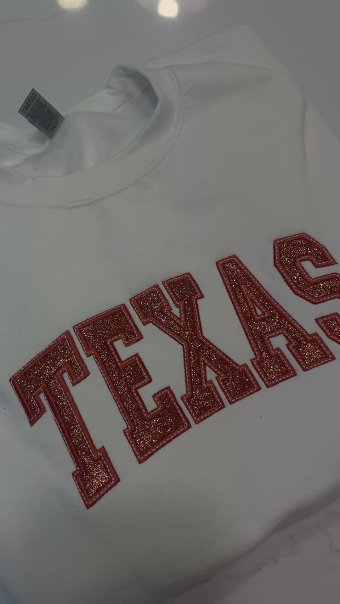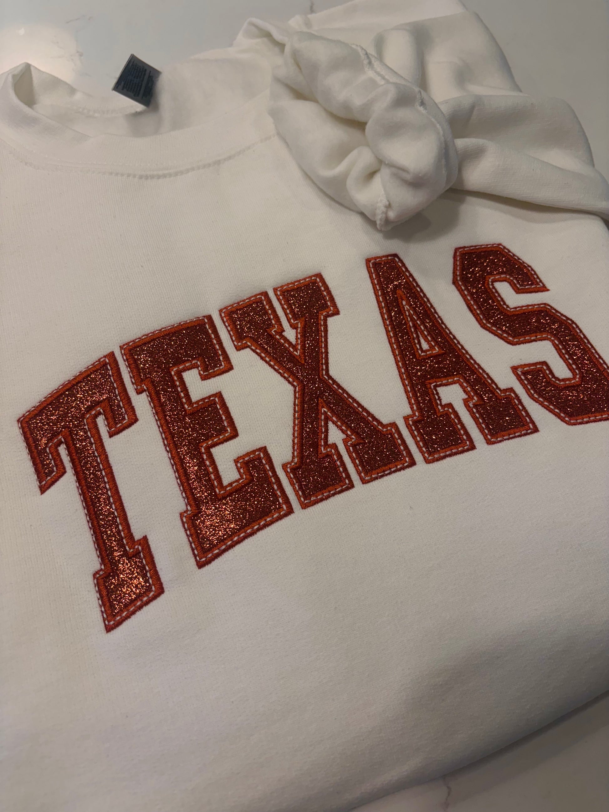 Show off your Texas pride in style with this sweatshirt featuring bold, glitter-accented “TEXAS” lettering. 🧡🤠